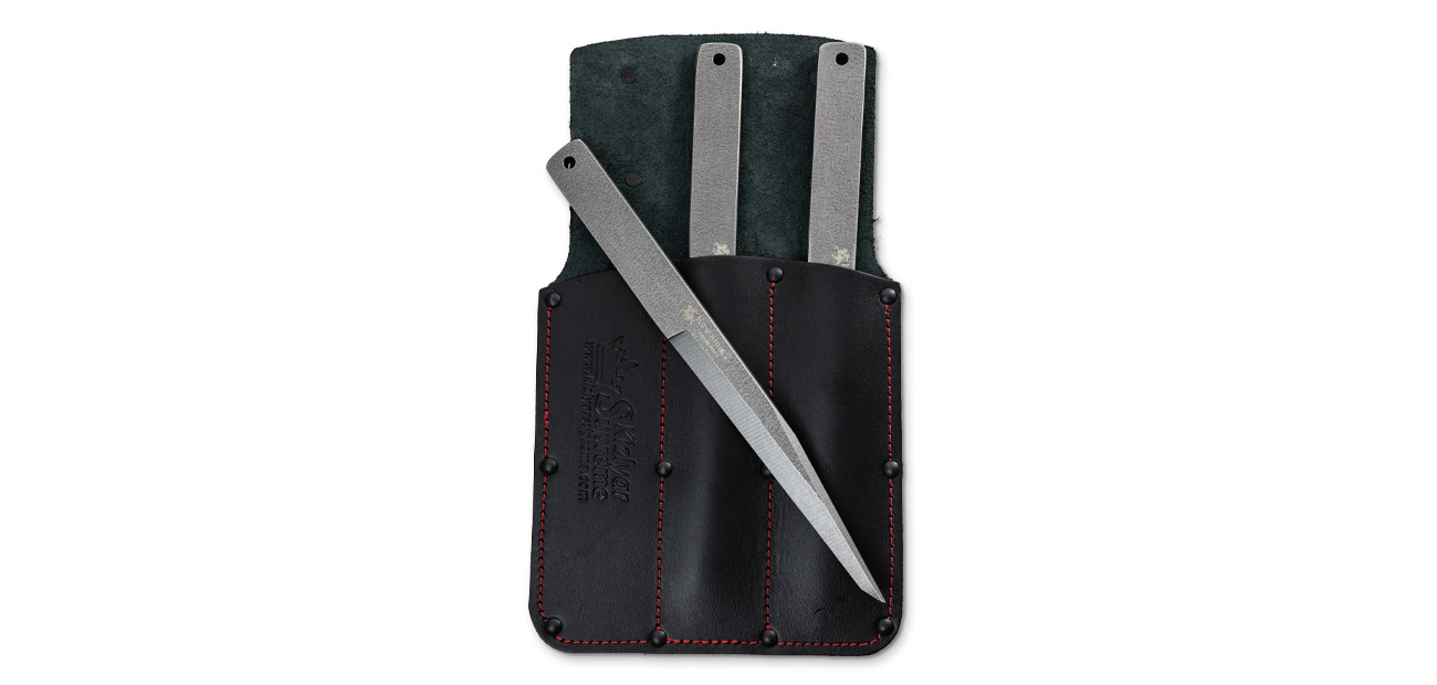 Fans of Kizlyar Supreme Throwing Knives have a sheath option now. This premium leather sheath holds three smaller throwing knives. You can use this sheath as a holder or wear it as a belt sheath.