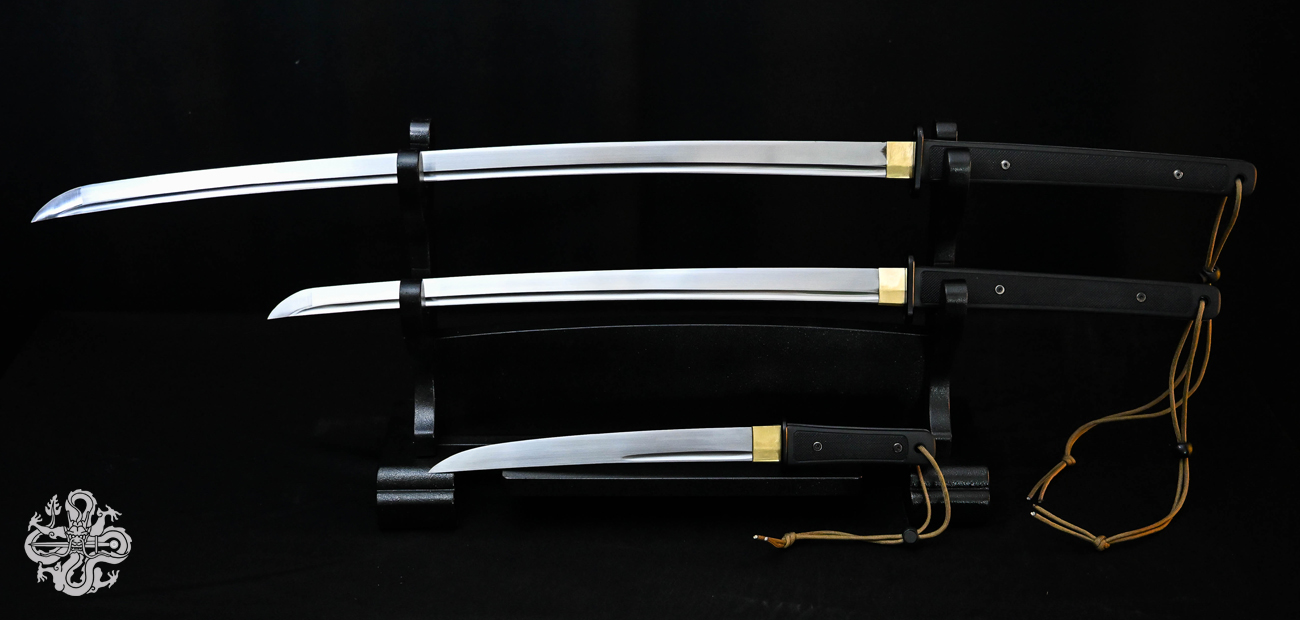 Please note: the current photos are of the approved protypes. Photos will be updated upon the arrival of the production models which shouldn't vary in appearance.The katana, wakizashi or tanto’s sageo (cord) on the saya (scabbard) may not be wrapped as pictured. Sageo color may vary.