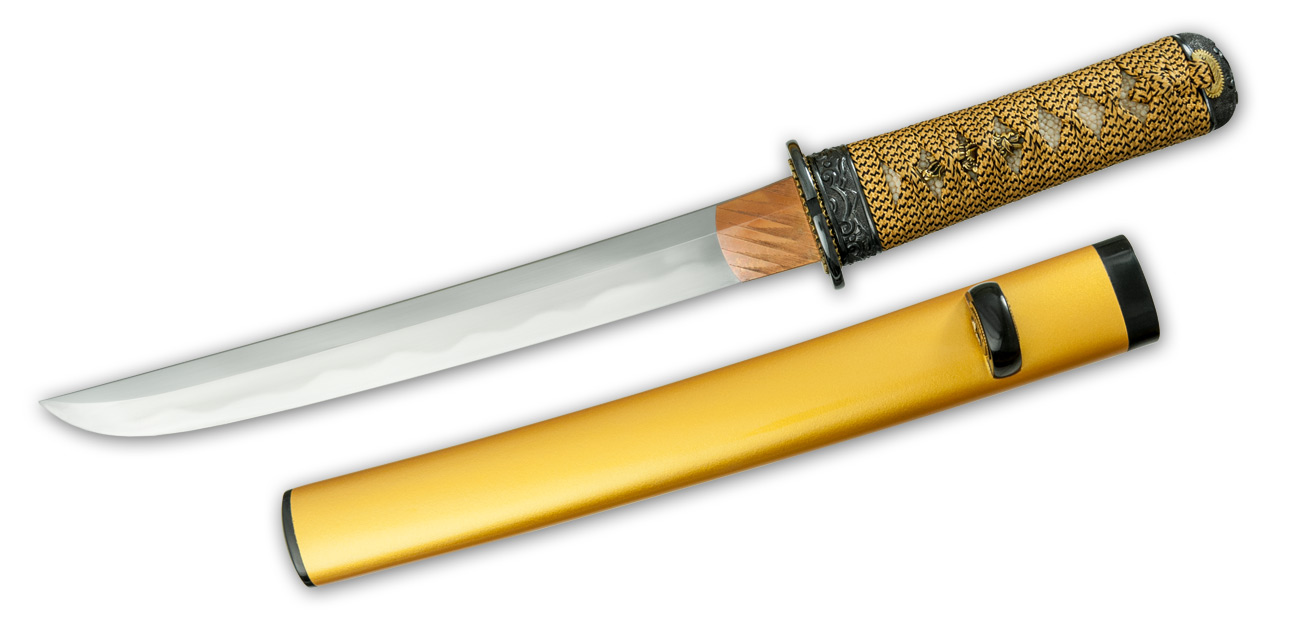 The matching Tanto for the Citadel Imperial Katana is themed in the symbolic flower of the royal family of Japan, the Chrysanthemum. In addition the golden color of the handle and saya represent the warrior's courage.