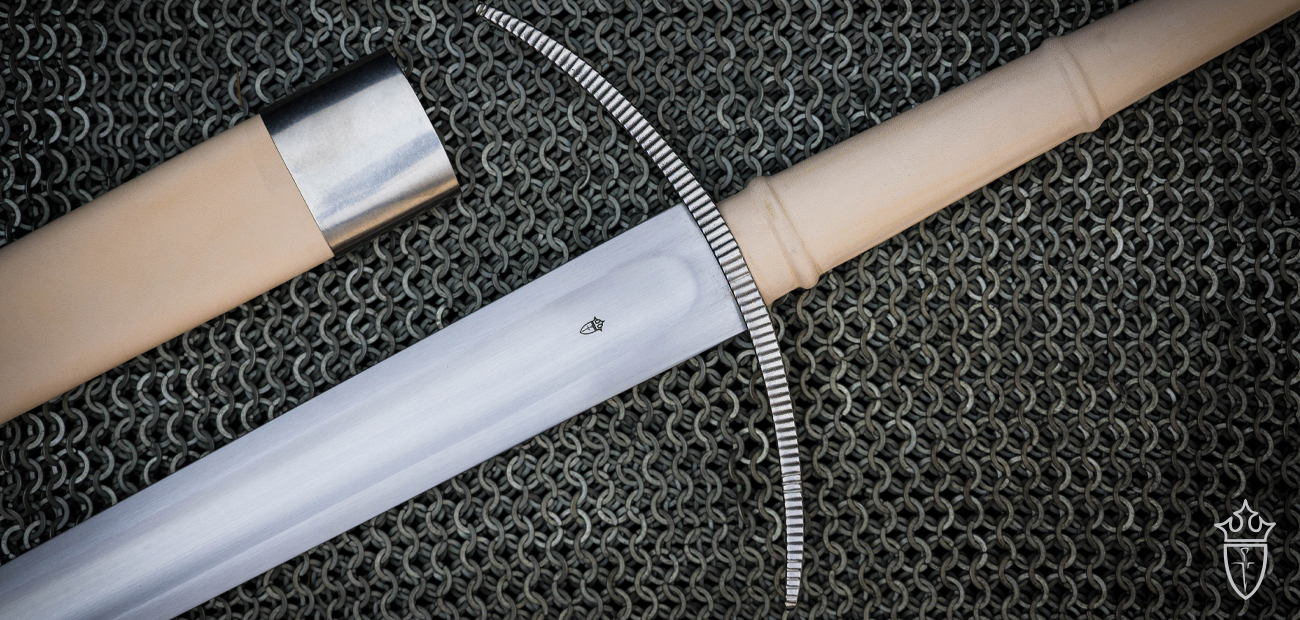 Another innovation is the provision of an all-leather scabbard, in contrast with the rigid scabbards normally provided with our Practical swords - this is designed both to provide an extra margin of safety when combatants fall on the scabbard in battle and also to minimize the need for replacement scabbards.