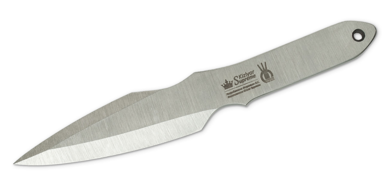Our Kizlyar Supreme Throwing Knives were developed and improved to their highest potential over the years by the fathers of the Russian knife throwing school, the most prominent is still grandmaster V. S. Kovrov, who is their original designer. Nothing is insignificant here: grip features and control of the knife, weight, surface finish, heat-treatment, proportions, aerodynamical properties - all these make a genuine throwing knife different from a standard knife. Professional throwing knives do not have thin parts or edges like standard knives have because they break very fast. In addition to this, the throwing knives are hardened at around 42-45 HRC to guarantee they will not break after years of throwing.